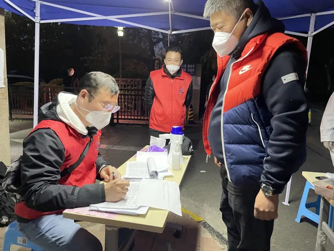 “请佩戴好口罩,保持一米以上安全距离”“请提前准备好检测码或身份证,有序排好队”……熟练地登记、扫码、采样,一气呵成,现场核酸采样后,杜谦又跟随社区医护人员挨家挨户上门检测。