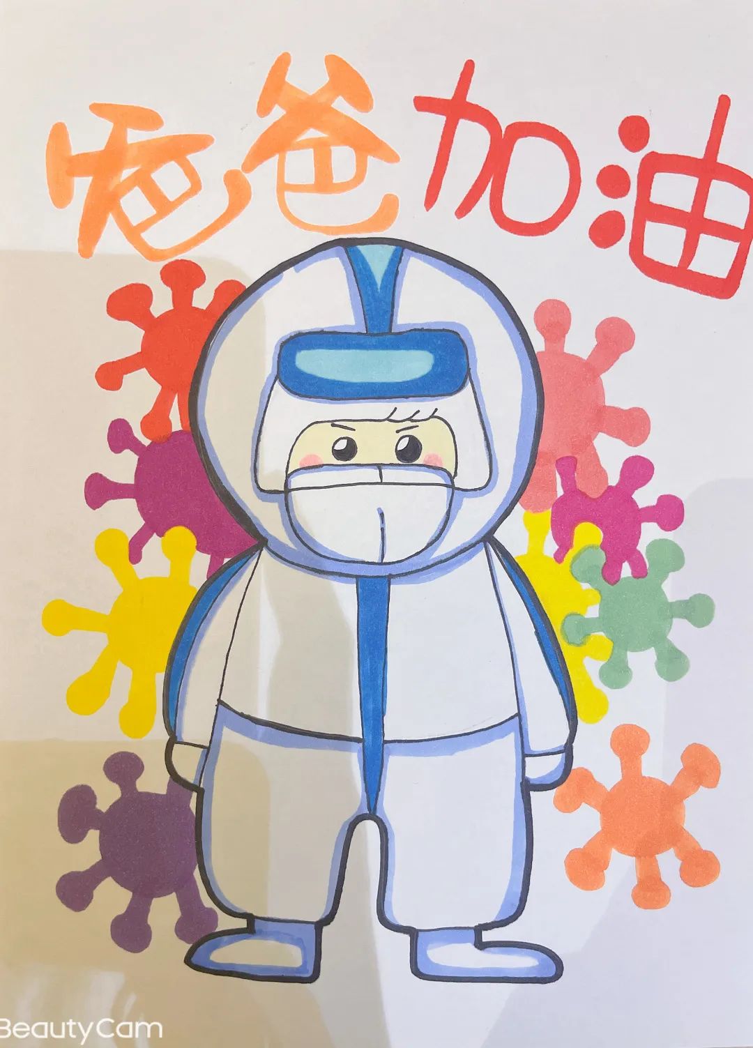 公司下沉南苑社区服务中心的志愿者杜谦12岁女儿之手。一身洁白的防护服,戴着厚实的口罩,只露出一双炯炯有神目光坚定的大眼睛,这是女儿心中爸爸最帅的形象。