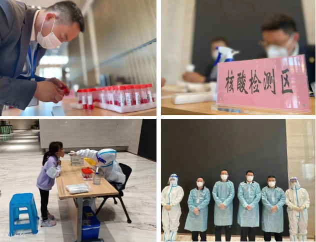 为减轻所属街道抗疫压力,城市建设大厦项目迅速响应部署,在大厦一层设立核酸检测点。项目积极组织自有员工参与核酸检测工作,通过视频学习、现场实操,熟练掌握扫码登记、咽拭子采集、个人防护等技能,确保核酸检测工作顺利完成,消毒、采集、归置,不断重复的动作累酸了胳膊,可她们却说:“不用休息,还有很多人在等待,我要坚持到为每一个人做完!”看着每天完成的检测数字,她们脸上露出欣慰的微笑,这是任务的完成,更是使命的担当。