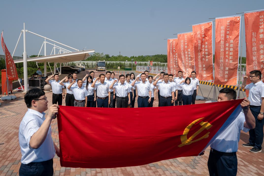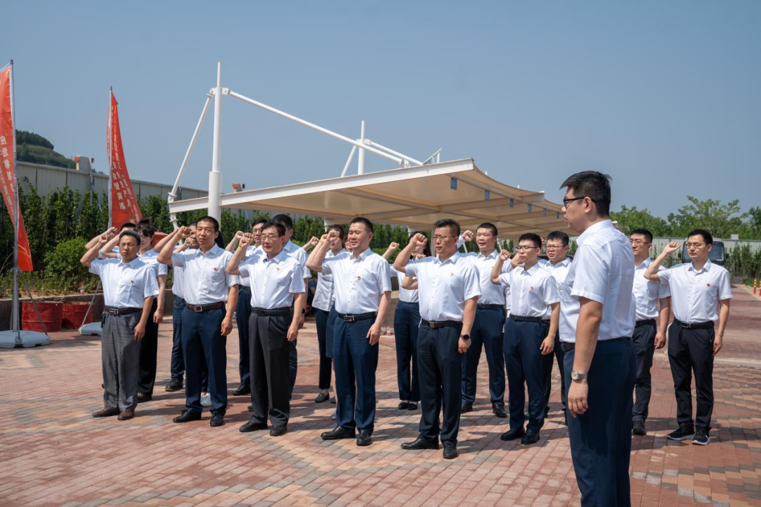 企管与法务质安党支部、工程五部党支部在泰山生态环境研究所项目联合开展“七一”重温入党誓词主题党日活动,党支部成员进行现场宣誓,再次接受入党誓词洗礼,进一步坚定理想信念。并观摩项目现场,实地了解了科创城片区项目概况及进展情况,就相关工作进行交流讨论,提升了组织凝聚力、向心力和战斗力。