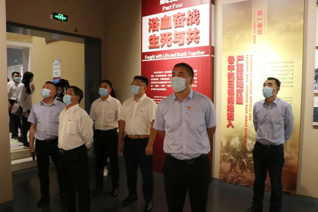 在展览馆中,大家跟随讲解员,依次参观了英烈长廊、序厅和四个展厅,细看了馆内丰富翔实的文献资料、清晰生动的黑白图片、宝贵真实的战争器物,观看了LED电子屏播放的抗战原始史料片,全面了解了鲁中抗日根据地的发展历程、著名战役战斗经过以及英模人物事迹,深切感受了中华民族生生不息、不屈不挠、英勇顽强的斗争精神。