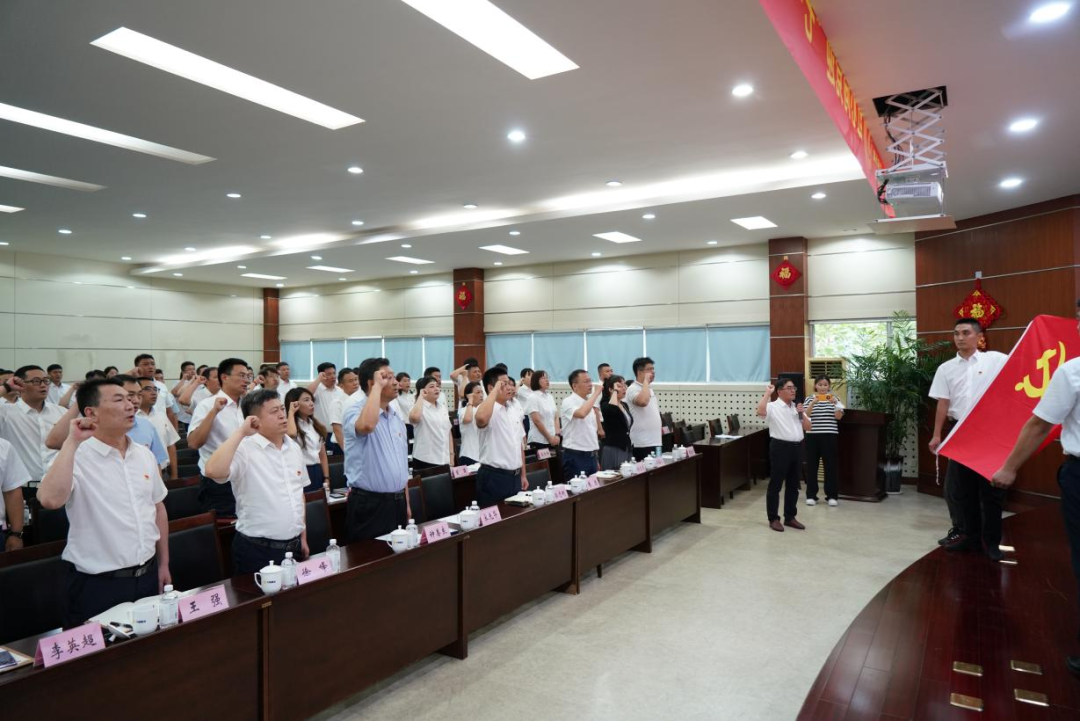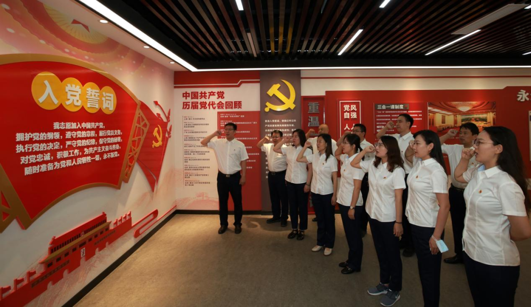 为庆祝建党101周年,进一步提升党员干部党性修养,增强听党话、感党恩、跟党走的思想和行动自觉,以更好的精神风貌迎接党的二十大胜利召开。近日,莱芜城市发展pg电子 有限公司全体党员在所属党支部书记的带领下,重温了党的百年征程,再次深刻学习党的宗旨思想与初心使命,回顾入党时的承诺决心,面对党旗庄严宣誓,以坚定誓词坚定初心、牢记使命。