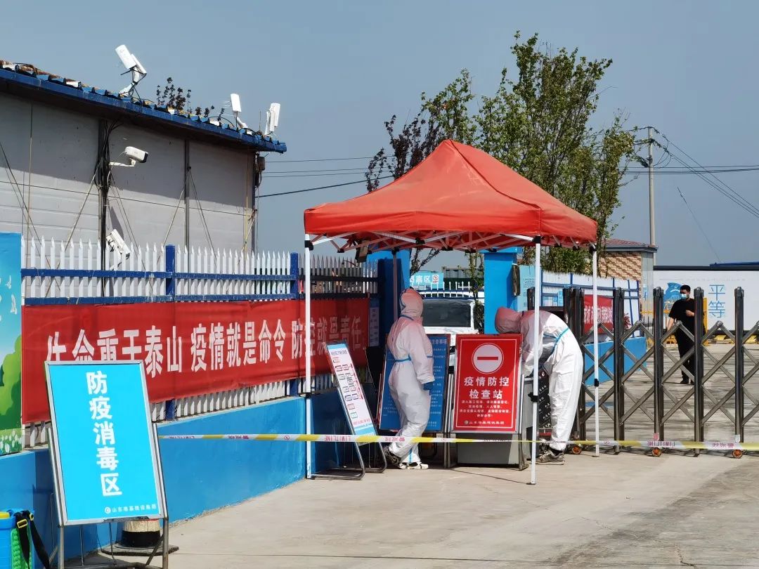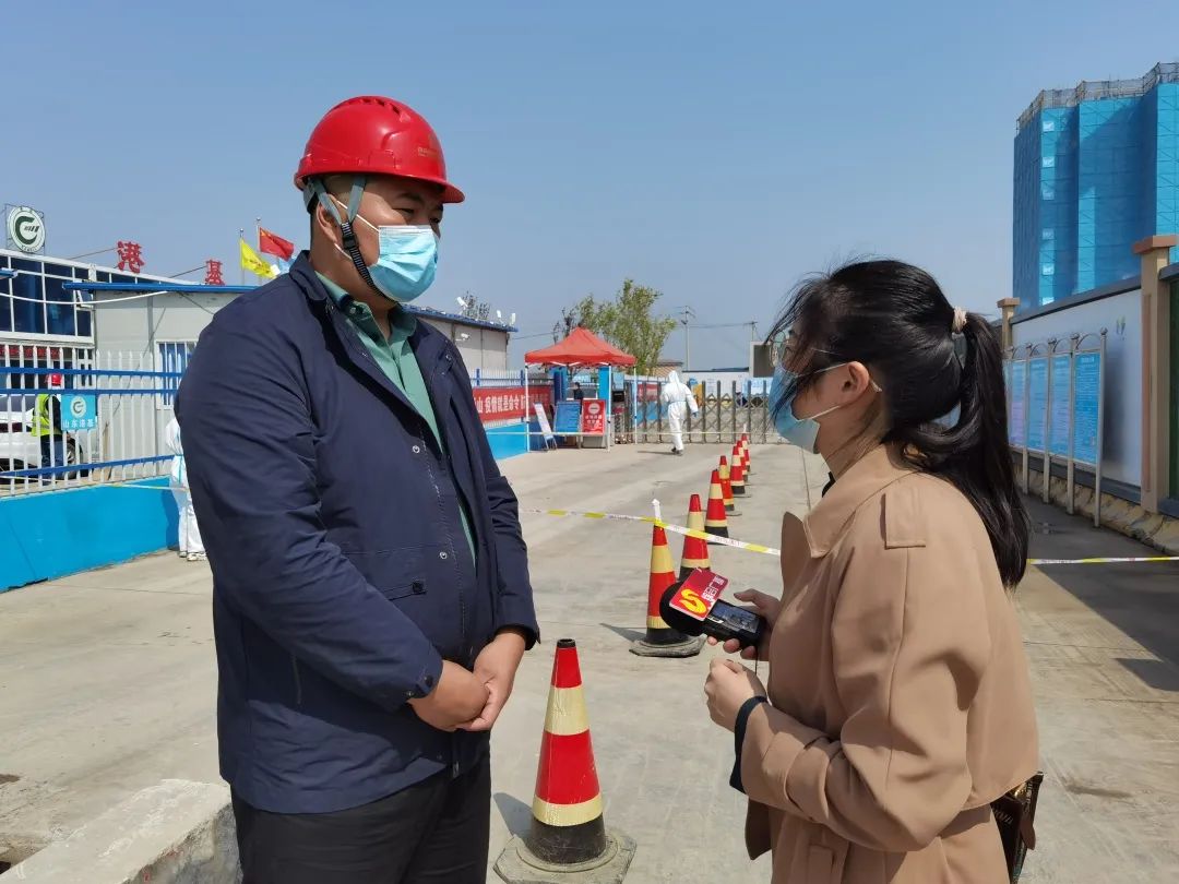 在济南市新旧动能转换起步区大桥安置五区项目入口,几名身穿防护服的工作人员严格对进出场人员进行信息自动化登记和健康信息核验。