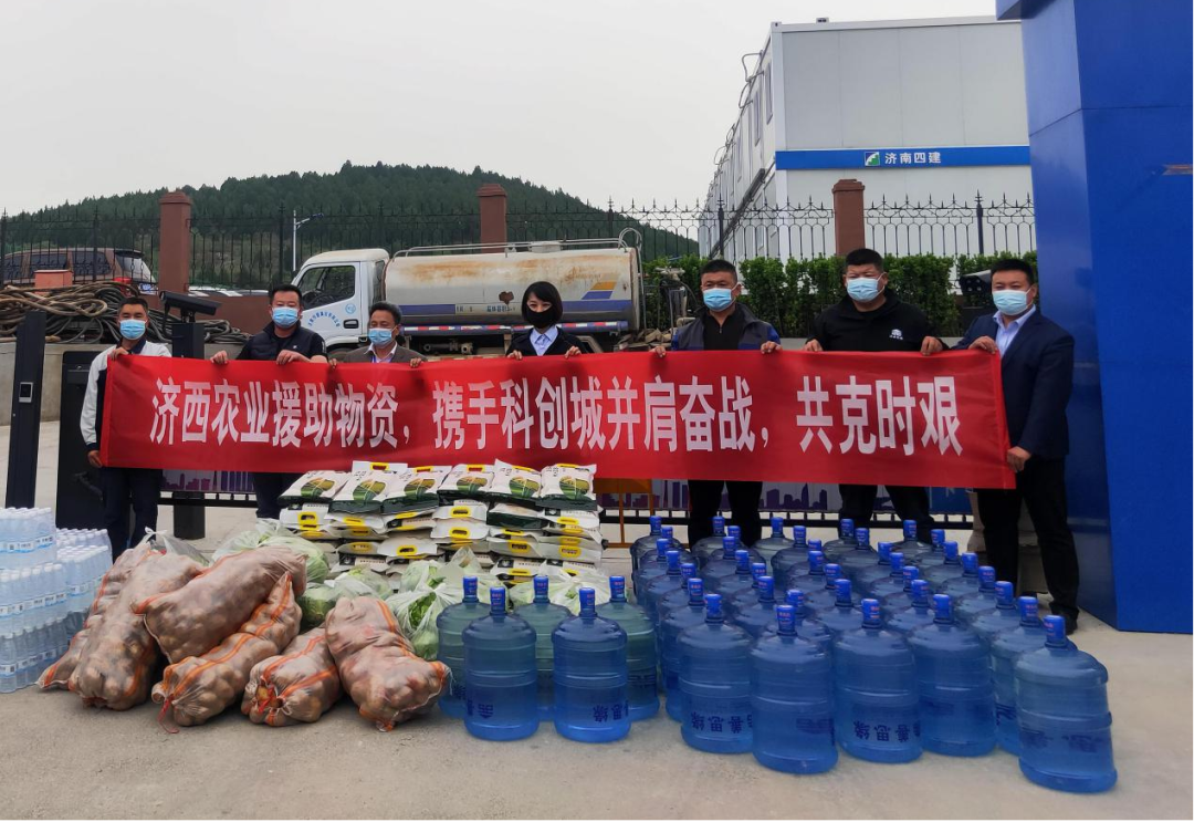工程五部联同山东济西湿地生态农场有限公司向科创城各项目部捐赠疫情防控及生活物资,用实际行动为打赢疫情防控阻击战贡献力量。