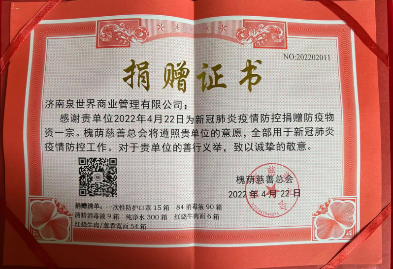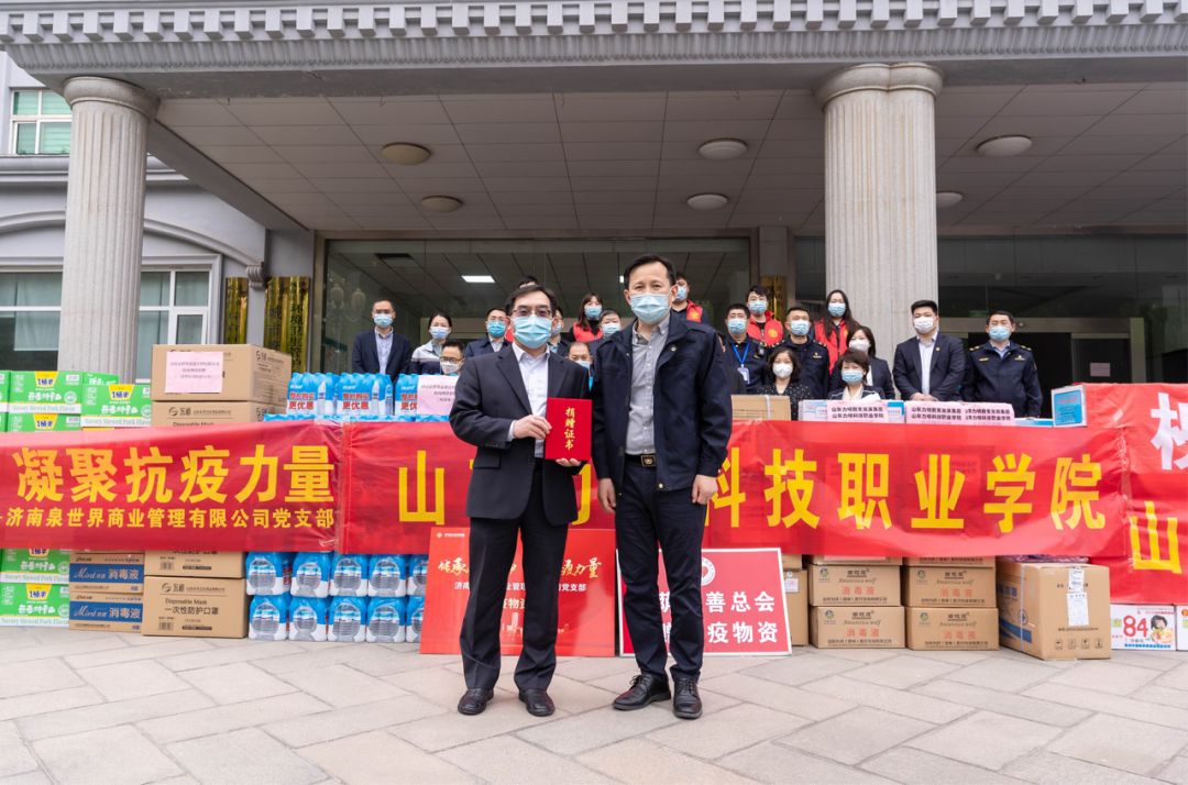此次活动,济南泉世界商业管理有限公司党支部积极组织干部职工向槐荫区住建局、槐荫区城管局、槐荫区交警大队捐赠口罩、84消毒液、消毒酒精、矿泉水、方便面等防疫用品和生活物资,同时对一线工作者表示敬意。