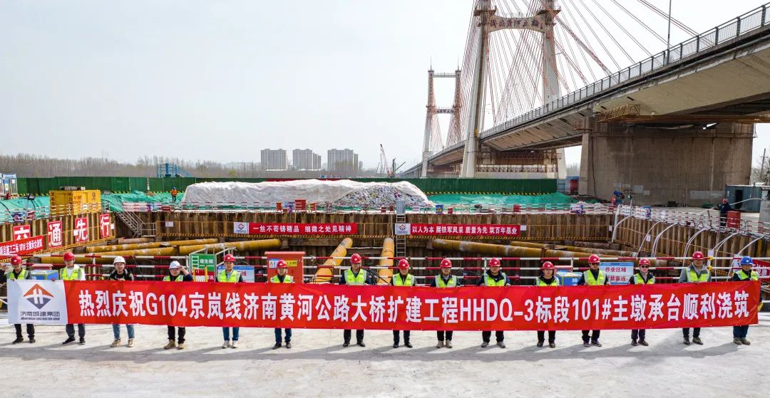 公司施工的G104济南黄河公路大桥扩建工程顺利完成全线首个主墩承台第一次混凝土浇筑,标志着大桥主墩工程施工进入可视化阶段,为后续塔柱施工奠定了坚实基础。