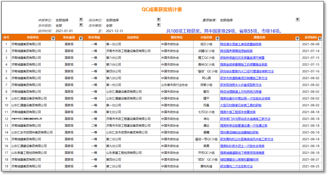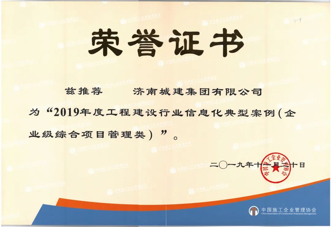 公司在2011年以特级资质申报为契机,全面启动了数字信息化建设,期间不断优化升级的‘1+N’数字化管理系统在2016-2018年连续三次获中国建筑业协会‘最佳实践案例’,2019年被中国施工pg电子协会评为‘年度pg电子级信息集成系统应用推荐案例’,其中当年其他三家获评单位均为央企,并且济南城建是唯一一家覆盖全部项目、全部成本要素,能够核算出整个项目成本的案例”,pg电子