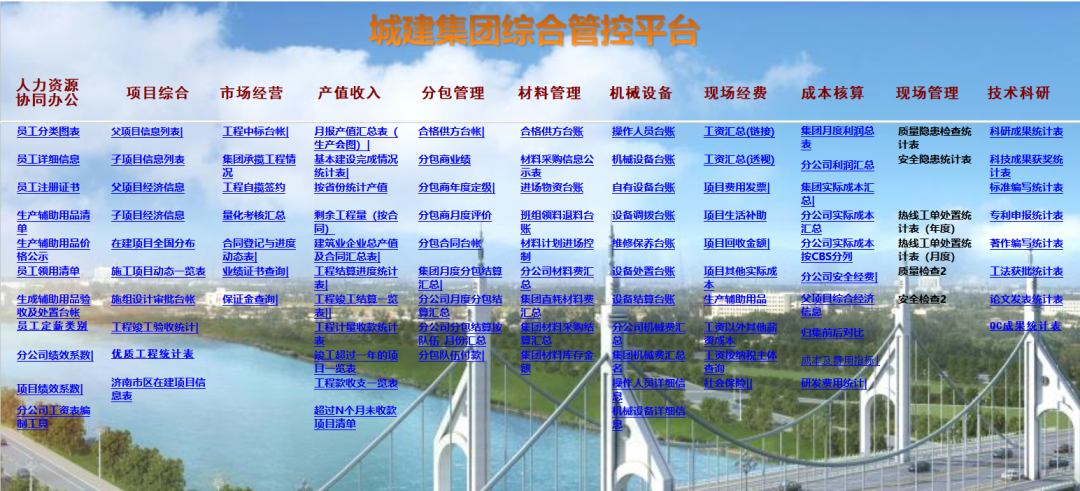 数据包括工程施工、投资、建筑产业化、半成品加工、设计、销售、试验检测等实现业务全覆盖;包含全国各个地市及海外项目实现项目全覆盖;包括劳务费、材料费、机械费等直接成本和员工薪资、办公用品、费用发票等所有管理费和间接费实现成本要素全覆盖。