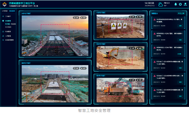 公司结合工程一线施工实际,联合百度开发智慧工地管理系统,其中AI边缘计算盒子可通过训练模型等方式智能识别发现问题,自动报警反馈推送至相关人员,形成全方位、多层次、无死角监控预警,从原来的“人找事”转变为“事找人”,进入“智慧”工地管理阶段。