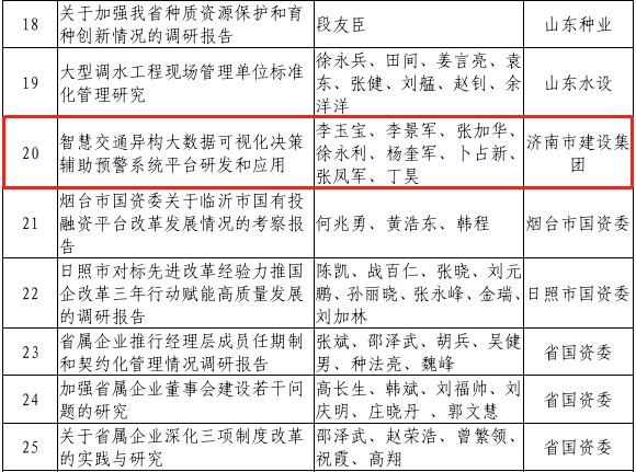 有限公司研究的《智慧交通异构大数据可视化决策辅助预警系统平台研发与应用》成果荣获“全省国资国企系统2021年度优秀研究成果”一等奖。