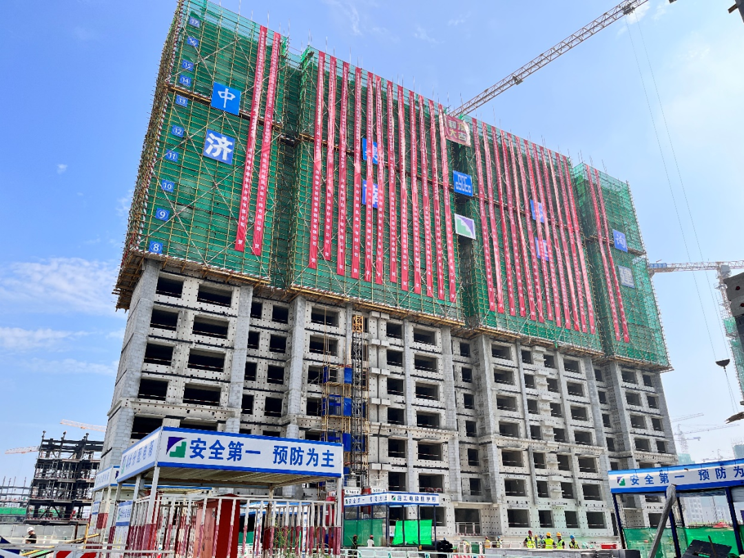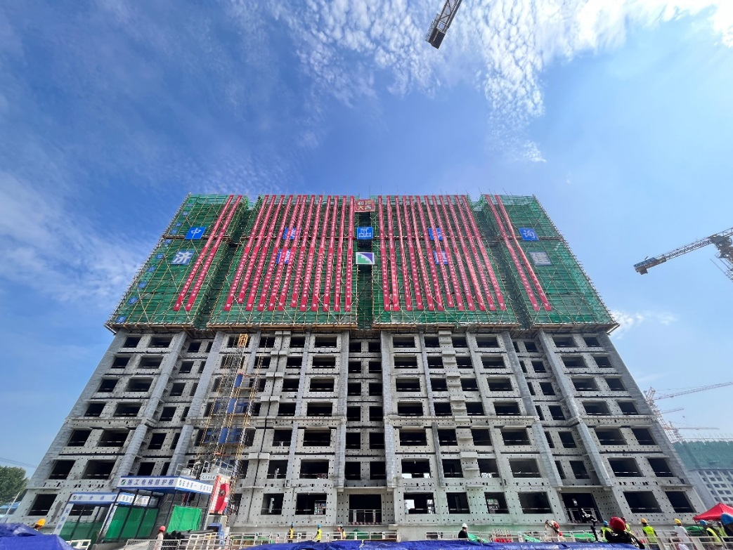 受委托建设的济南新旧动能转换起步区孙耿街道七村整合安置区(二期)工程2#楼封顶,是二期项目首栋封顶单体工程。日前,孙耿街道七村整合安置区(三期)工程已完成首栋住宅封顶,目前,二期、三期工程正抢抓黄金施工期,全力推进工程建设。