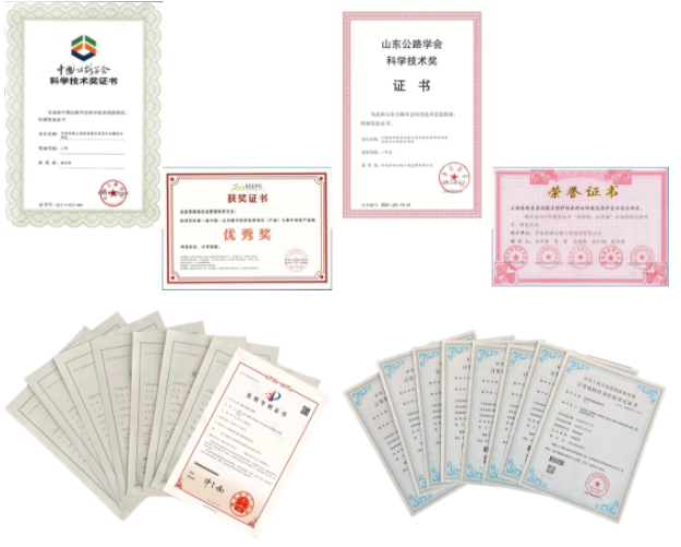 伴随着公司的快速发展,公司的技术研发和自主创新工作也从未停止,科技创新全面激活公司发展潜力,金诺公司参与起草了中国交通运输协会团体标准《铝合金防眩格栅》,作为主要承办单位编写了济南市地方标准《公路工程文明施工管理规范》;取得多项专利授权、软著授权;历年来,多个QC小组及成果均取得省部级荣誉奖项;《公路结构表层混凝土防护纳米材料的研发及防护应用技术》成果荣获第十六届市优秀自然科学学术成果一等奖、2021 年度山东公路学会科学技术二等奖,获授权专利有十余项、软件著作权九项,出版专著六册,另有多项创新成果正在实施验证中。