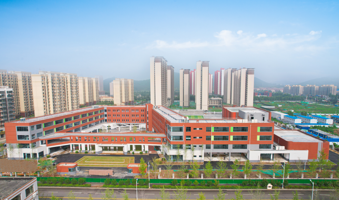万融置业公司开发的济水学苑项目配建小学,位于水鸣街与莲台山路交叉口。学校按照省级规范化标准建设,办学规模36个班,占地面积38019㎡,建筑密度18%,绿化率达35%。
