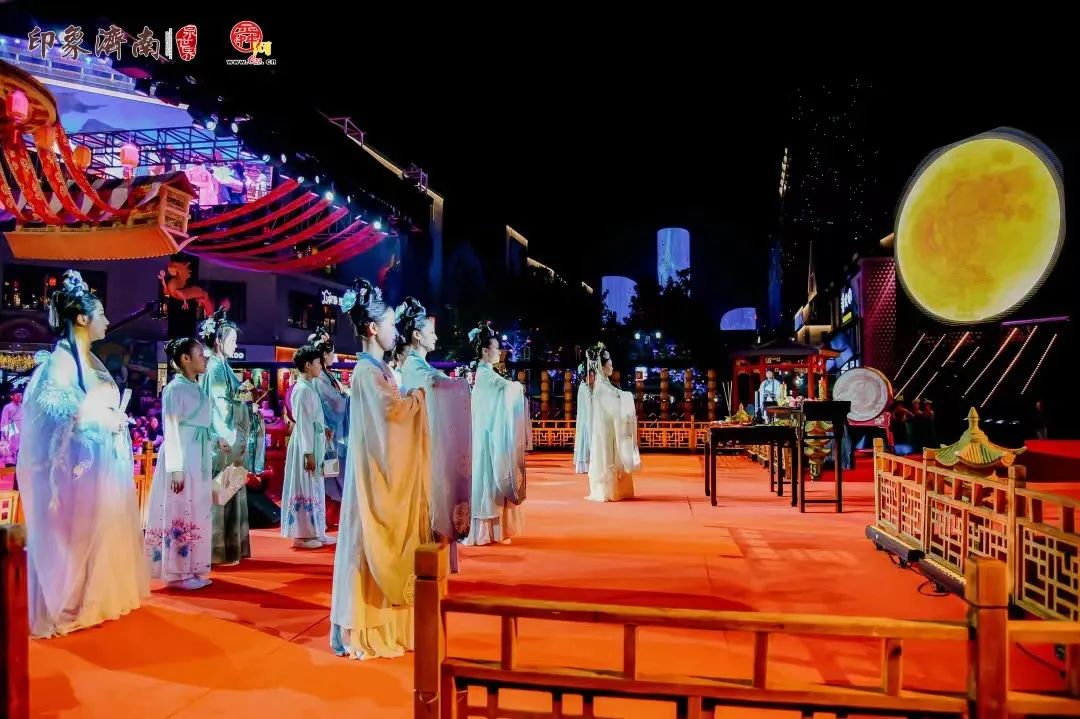 本次活动,作为印象济南•泉世界品牌文化节事活动的又一创新呈现,同时还是第十届济南国际泉水节的重要组成部分。中秋拜月大典在前四届的经验基础上,以“盛世欢歌繁华鎏金”主题,通过拜月典礼、文旅演艺、国风互动等组合创意,持续打造践行“文化两创”的新载体。今年的中秋拜月大典,在展现祭月、赏月、拜月、颂月等传统民俗的同时,通过歌舞表演、舞台氛围、国风互动等形式融合展示,运用多元形态传播中华优秀传统文化,让传统文化创新展示展演,深入游客内心。
