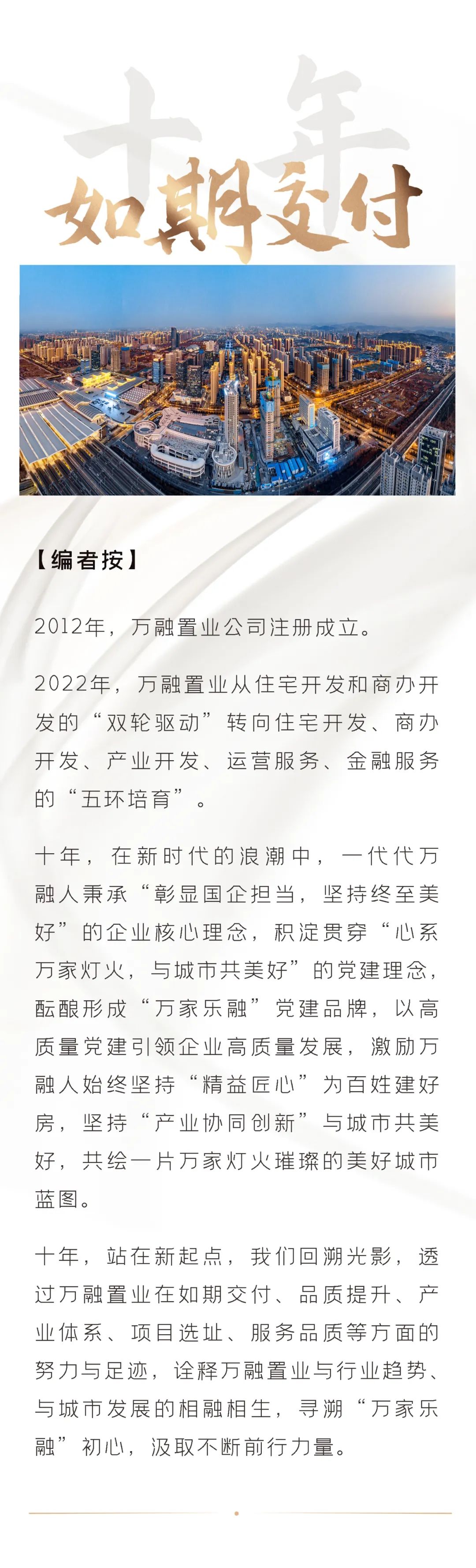 坚持人文关怀,追求营造高品质生活环境,让城市品质融入万家灯火,实现如期交付。在卓越如期交付的背后,是万融置业品牌背书的实力护航和匠心坚持。