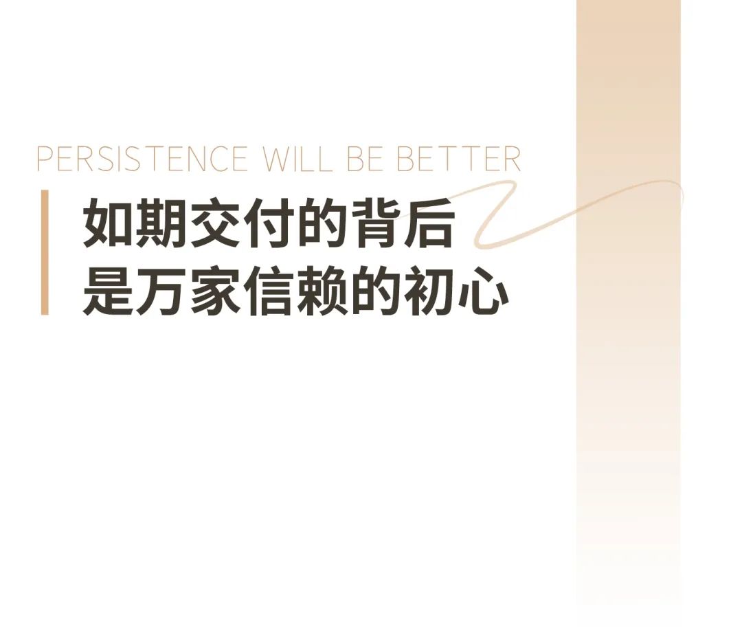 不负家人所期,如约交付!仰仗的是细节的铺陈与支撑,用脚步丈量每一个房间,精工每一处细节,想业主所想,是对业主最大的尊重。最幸福的时刻是回家,最动人的风景是家人,一张张洋溢着幸福快乐的笑脸,一句句家人的认可与夸赞,是万融人“为满足人民对美好生活的向往而奋斗”的初心。