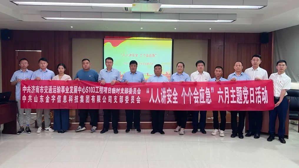 有限公司党支部与济南市交通运输事业发展中心S103工程项目临时党支部开展共建,共同举办“人人讲安全·个个会应急”安全知识竞赛暨6月主题党日活动,S103工程项目相关参建单位党员、职工代表参加本次活动。