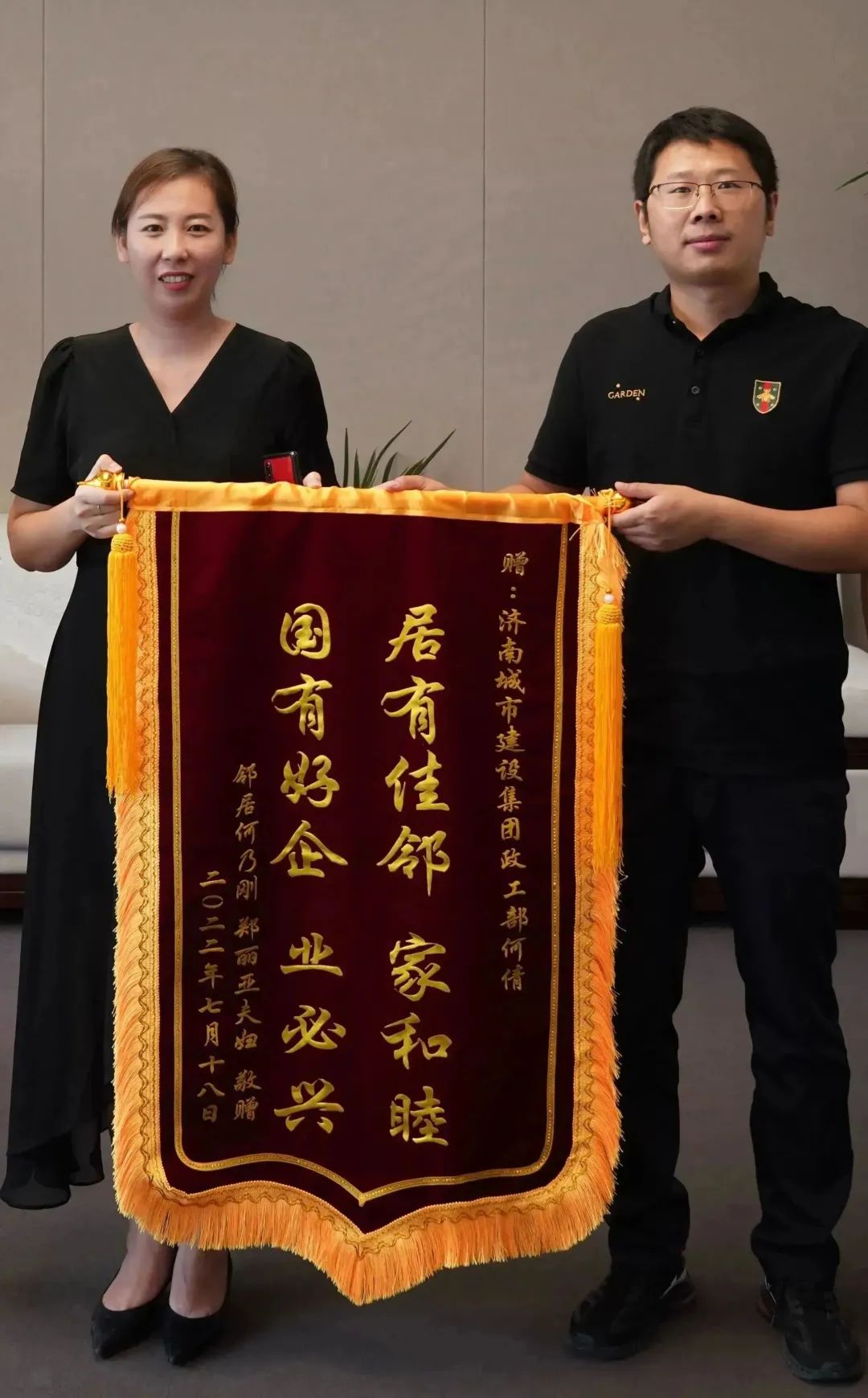 一面“居有佳邻家和睦 国有好pg电子必兴”的锦旗送至pg电子
