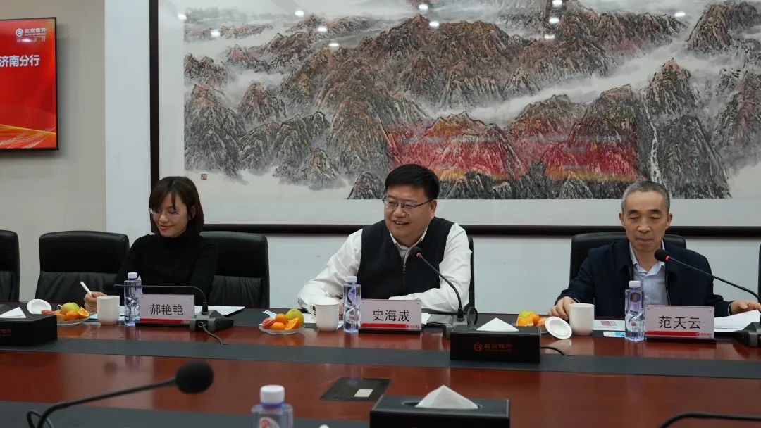 党委书记、董事长史海成,总会计师范天云,总经理助理郝艳艳一行前往北京银行济南分行,就下一步银企合作进行了深入会谈交流。北京银行济南分行行长田宏,行长助理苗振华,行长助理赵苏娅,行长助理贾汝广及相关负责同志参加了会谈。