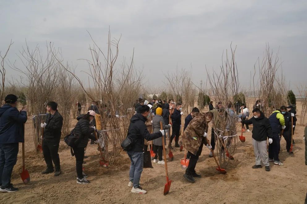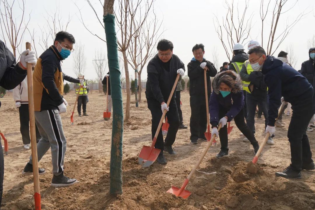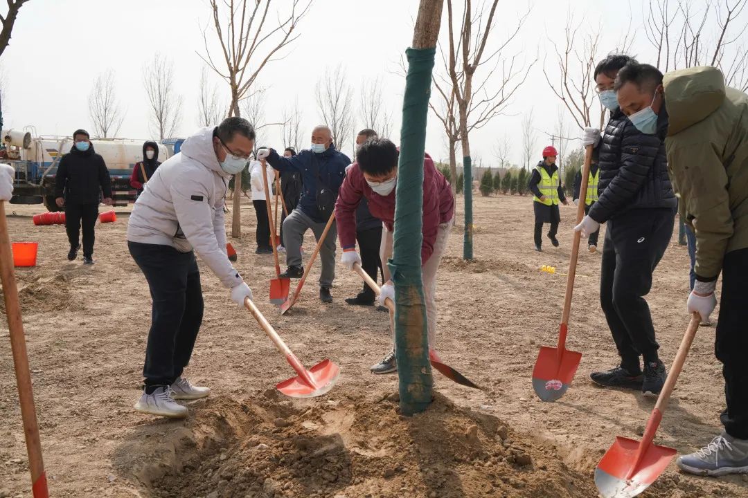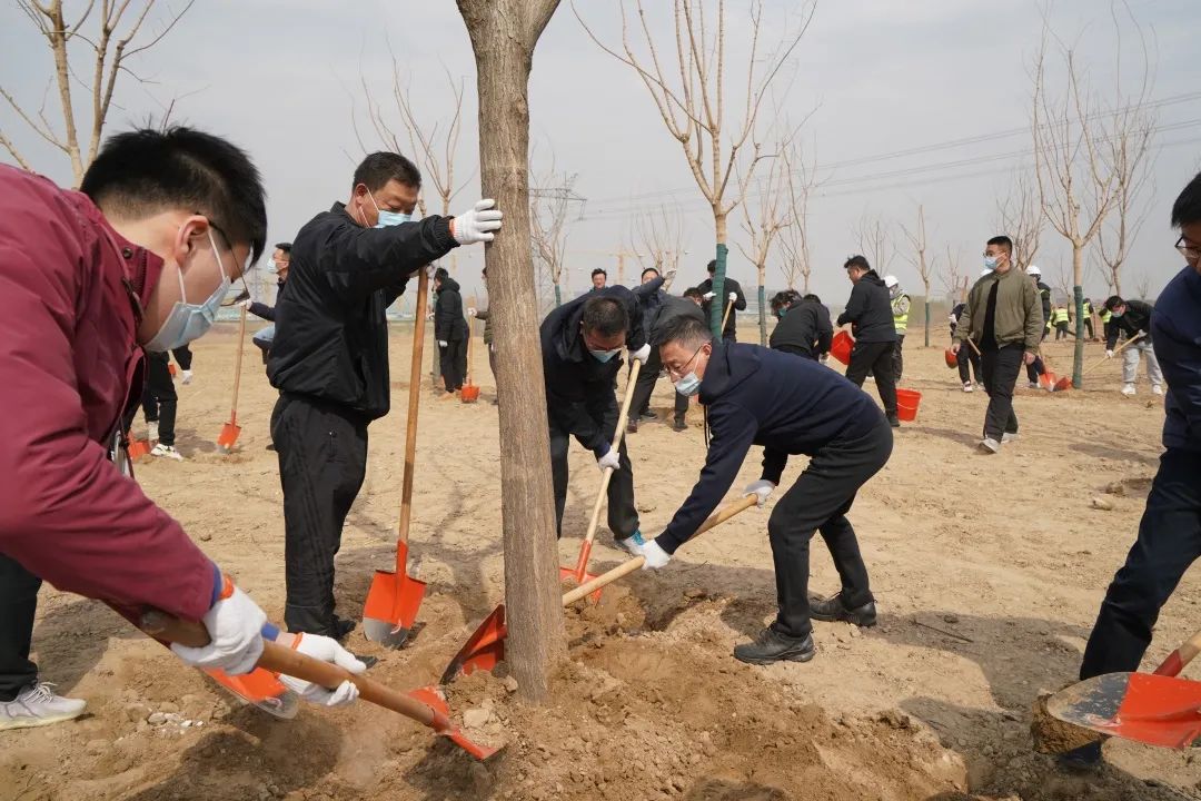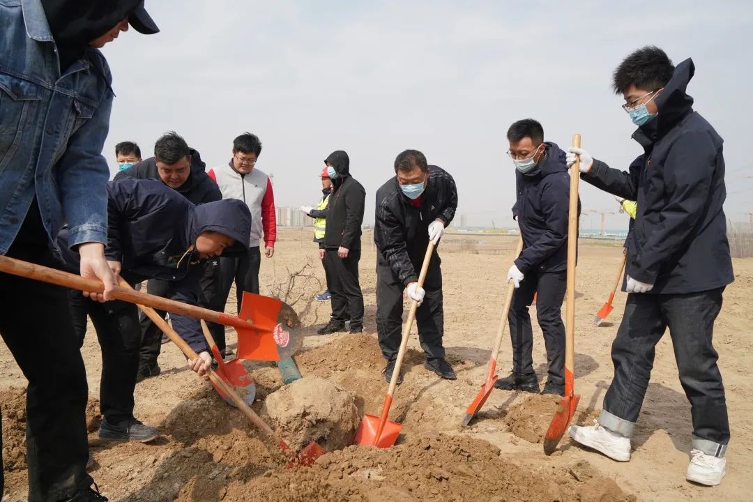 在起步区项目建设一线,举办“播种一抹绿 守护母亲河”2023年职工春季植树活动。pg电子