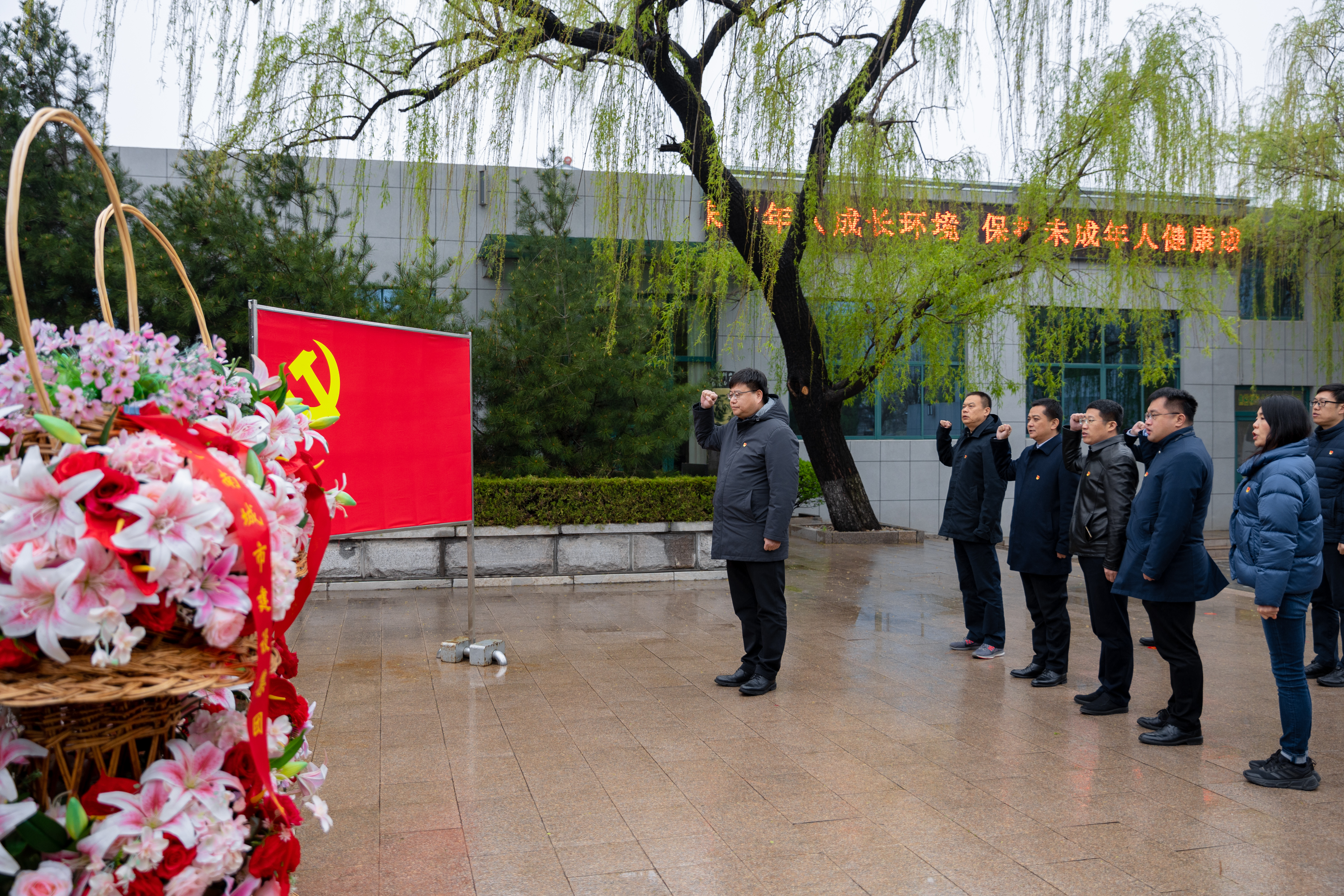 领导班子成员向焦裕禄同志塑像敬献花篮,并重温入党誓词。pg电子
