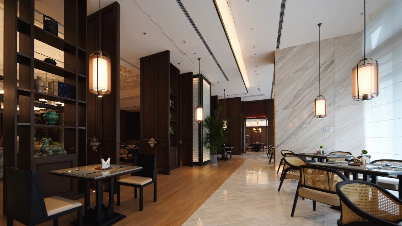 酒店以宋式美学为设计特色,酒店大堂的“云起·鹊华秋色”,餐饮区的“云深·华屋满朋”,宴会厅的“云上·宴宾会友”,客房的“云归·晓镜画屏”全面诠释了宋式美学的匠心独运,将精致和典雅发挥得淋漓尽致。“中式、简约、现代、绿色”是酒店的四大核心理念,可以让来宾感受到浓厚的中国传统文化及细致入微、始终如一的待客之道。
