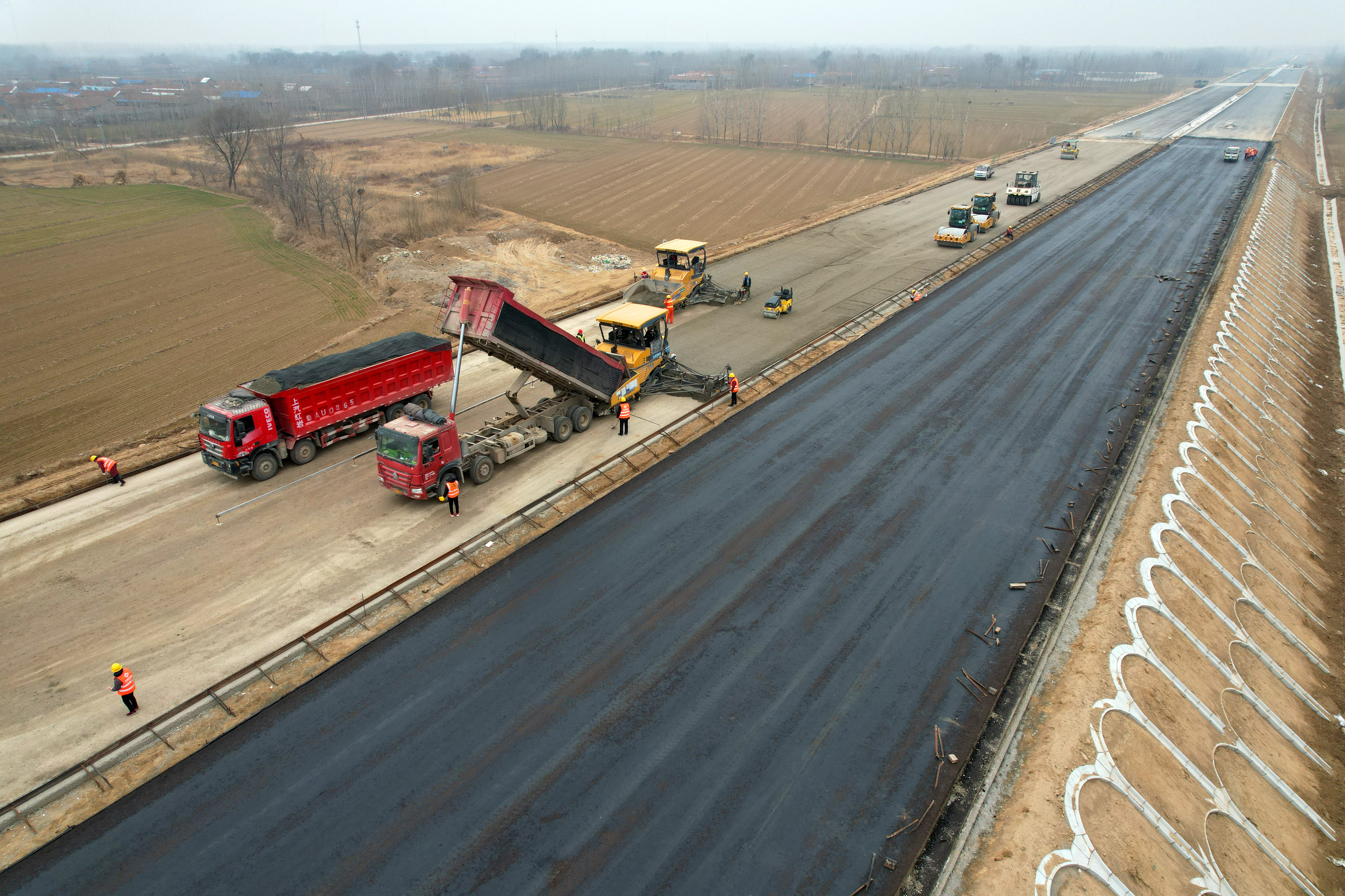 公司承建的大西环项目二分部主线总长度19公里,安仁互通匝道总长20公里,伦镇互通收费站匝道总长6公里,设计3层水稳,总面积约171万平方米。