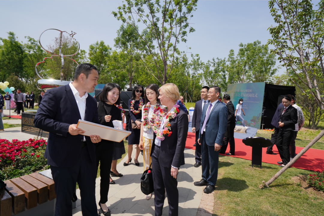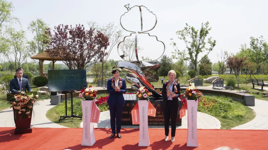 5月9日,济南国际友城花园——芬兰万达友城花园在济南举行开园仪式。副市长杨丽与芬兰驻华大使孟蓝共同为芬兰万达国际友城花园开园剪彩。