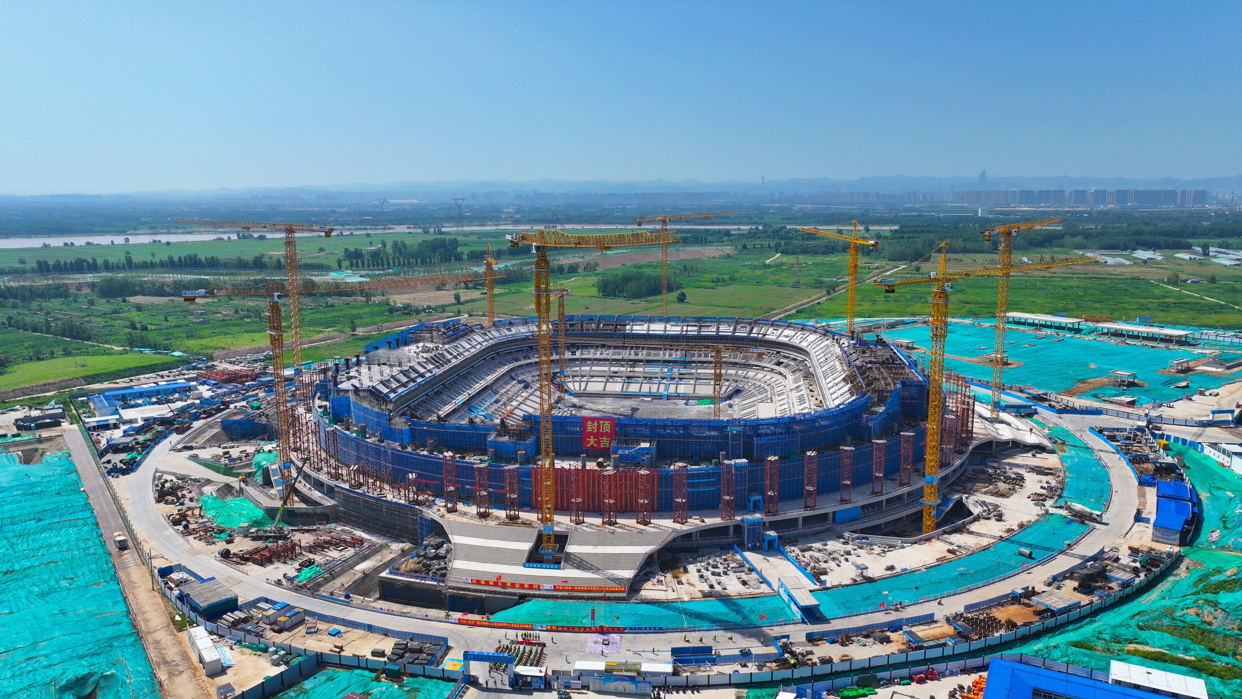 受起步区管委会委托建设的黄河体育中心专业足球场项目主体结构顺利封顶,标志着山东省首个6万座专业足球场全面迈入屋盖钢结构施工新阶段!