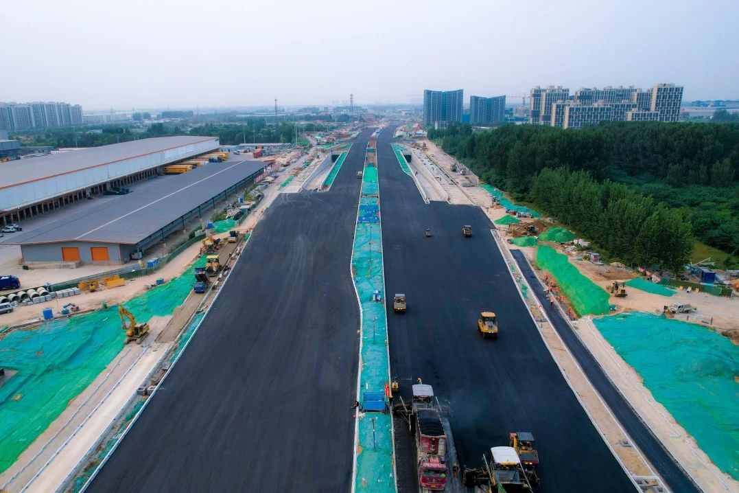 受委托建设的起步区黄河大道一期工程建设稳步推进,项目二标段中粒式沥青摊铺施工全线完成,为项目顺利实现通车目标奠定了坚实基础。