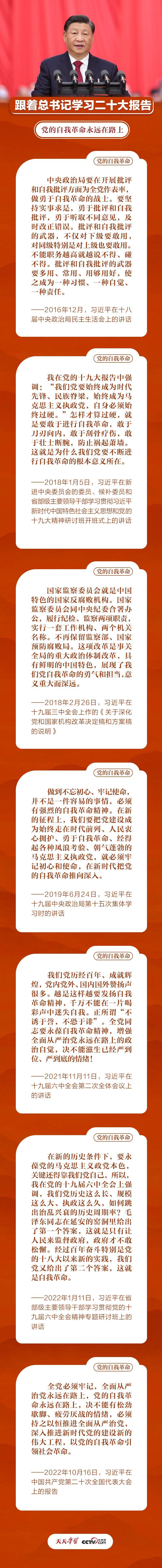 中国共产党的百年历史,既是一部波澜壮阔的社会革命史,也是一部激浊扬清的自我革命史。党的十八大以来,习近平总书记在不同场合多次强调“在新时代把党的自我革命推向深入”,让我们一起学习。