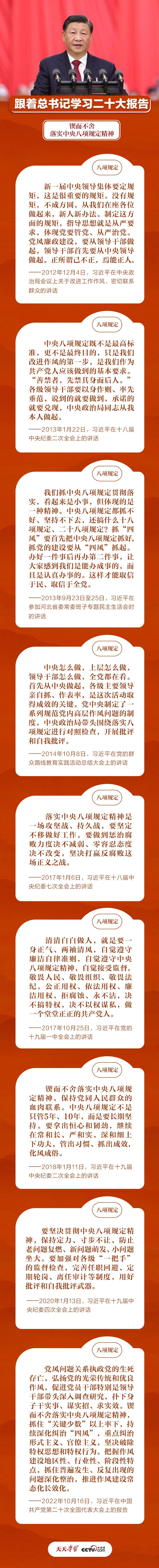 党的二十大报告对锲而不舍落实中央八项规定精神作出新部署,要求“抓住‘关键少数’以上率下,持续深化纠治‘四风’,重点纠治形式主义、官僚主义,坚决破除特权思想和特权行为”。