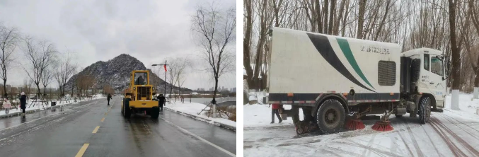 园区管理有限公司科学部署、迅速行动,第一时间组织人员、装备对相关道路、区域进行积雪清理作业,及时消除安全隐患,让市民游客安心赏雪游玩。