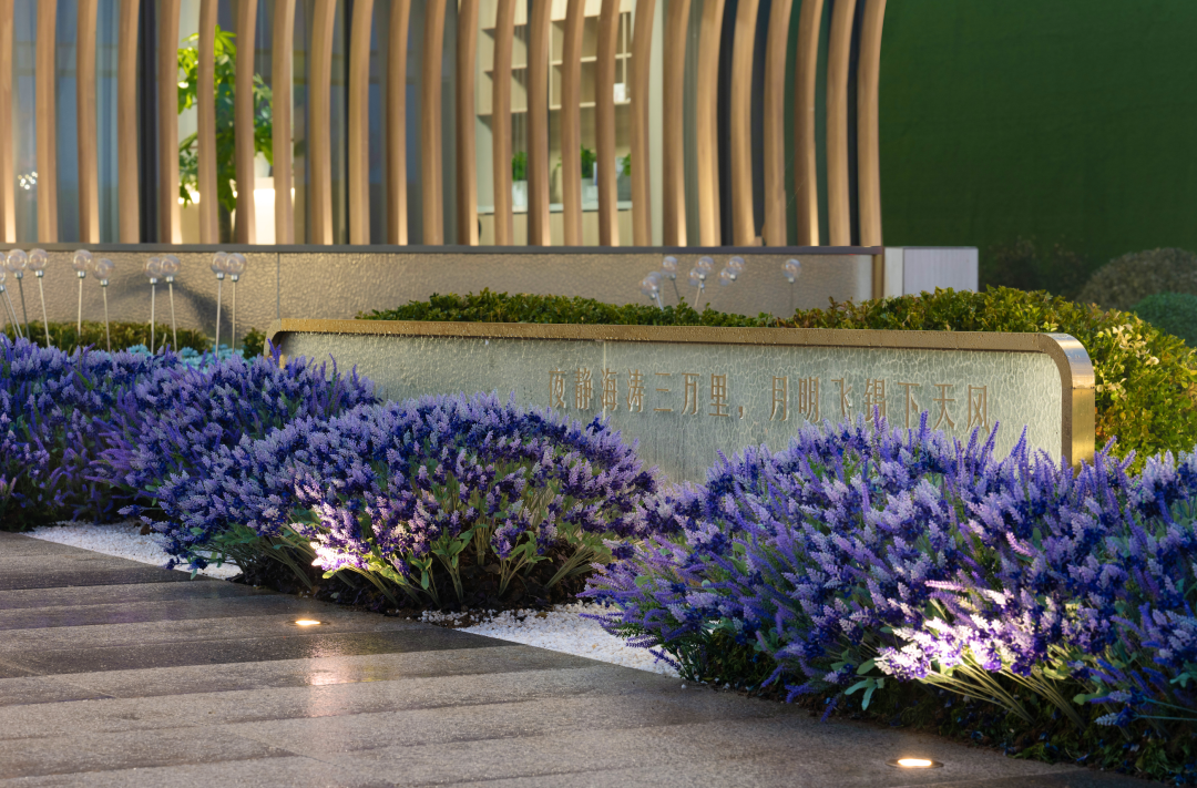 天风锦都项目位于济南市槐荫区,远观风云平静,近看风帆扬起,潺潺流水与汩汩喷泉的水景,加之抽象风帆,隔离嘈杂的城市道路与车流,形成广场艺术空间。邻边水景环抱,远处萤火点点,映衬建筑,大面积白色折线艺术的景墙,形成半围合室外洽谈区,艺术广场白天是中小型营销活动的举办地、唯美浪漫的室外洽谈区,功能复合,灵活多变。