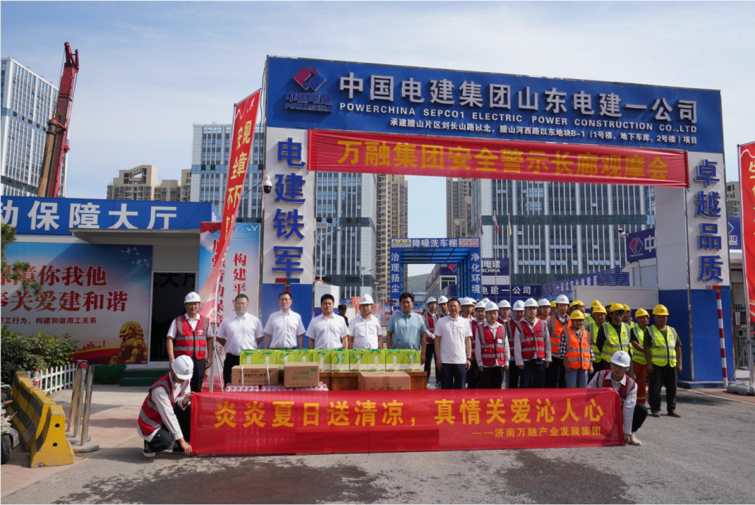 同时,与会领导向一线建设者送上防暑降温慰问品。