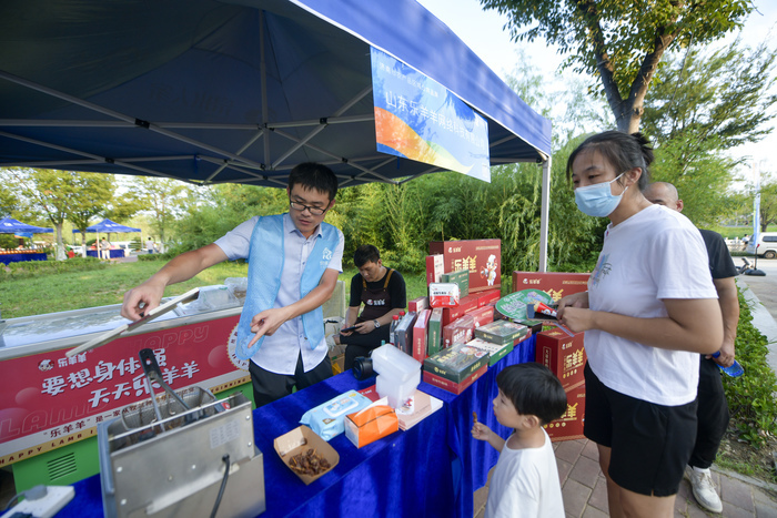 活动现场,山东济西湿地生态农场有限公司与20余家“泉水人家”授权pg电子和特邀pg电子带来了众多质优价廉的农产品,鸡蛋、牛奶、香油、小米、羊肉、蜜桃……现场展销了米面粮油瓜果蔬菜,引来广大市民纷纷选购。除了有各种美食,活动还准备了精彩的文艺表演。