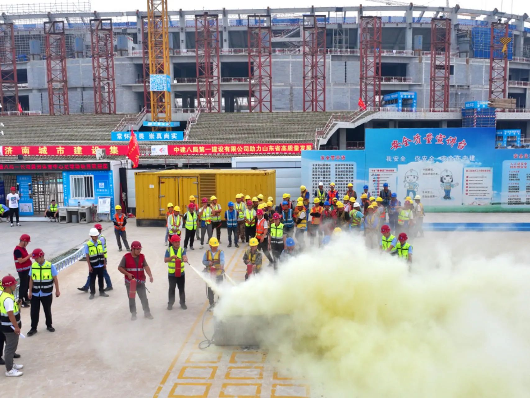 工程四部在黄河体育中心专业足球场项目组织开展2023年秋季消防应急演练活动。