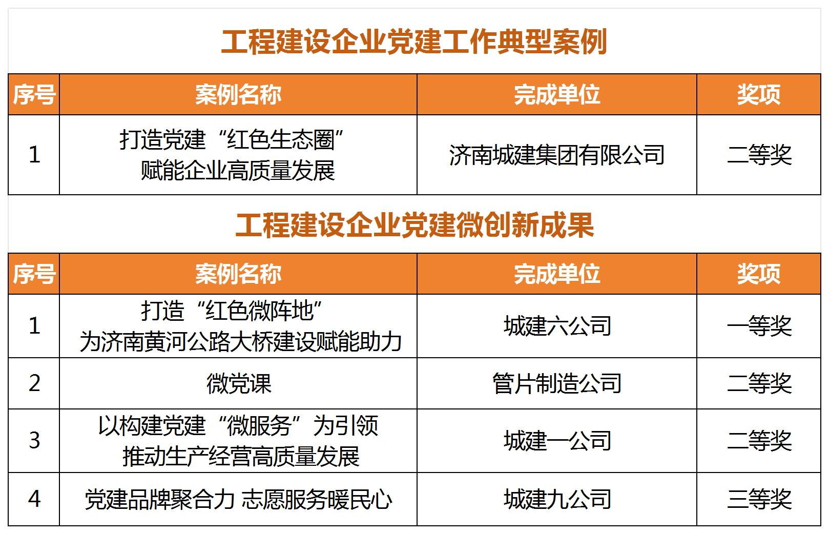 公司《打造党建“红色生态圈” 赋能pg电子高质量发展》党建工作案例获评“工程建设pg电子党建工作典型案例”二等奖,城建六公司《打造“红色微阵地 ” 为济南黄河公路大桥建设赋能助力》、城建一公司《以构建党建“微服务”为引领 推动生产经营高质量发展》等4项案例分别获评“工程建设pg电子党建工作微创新成果”一、二、三等奖。