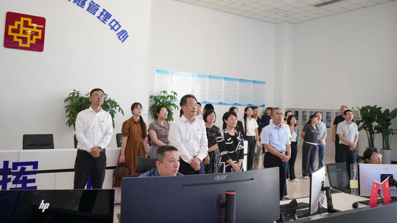 桥隧管理中心,活动人员通过实时监控了解济南黄河济泺路隧道项目运营状况,并就如何发挥好党建引领项目管理运营进行交流探讨。