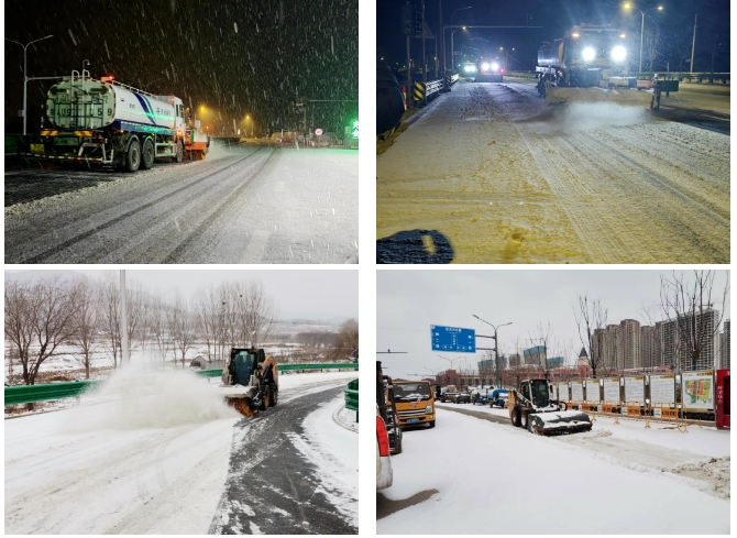 各单位全力应对、昼夜不停,对事关民生保障的各在建及运营交通项目和园区楼宇进行及时除雪除冰,为市民群众保驾护航。