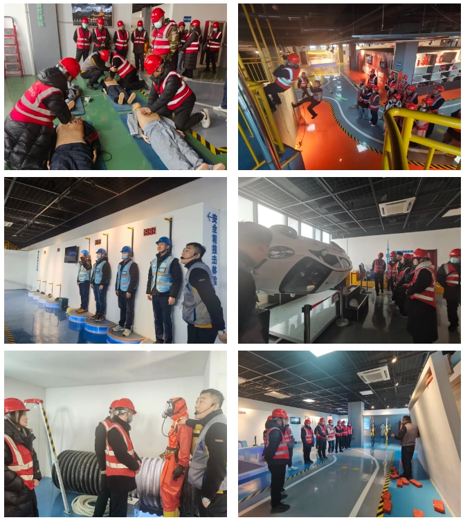 培训过程中,教官对场馆内高处坠落、密闭空间作业、墙体倒塌、车辆翻覆、高空缓降、湿地触电、焊接烟尘危害、楼宇逃生、VR模拟碰撞、心肺复苏等43个体验模块进行了详细的讲解,每位参训人员亲身体验,通过模拟发生各类事故和突发事件时所面临的真实状况,学习相应的应急处置方法,更加深入的了解危险源及控制措施。