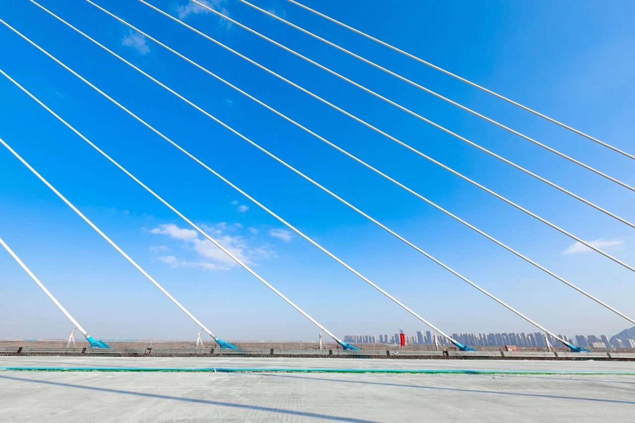项目推进中研发了超宽组合梁断面、智能化无人值守顶推技术、高疲劳性能拉索体系等创新技术,采用标准化设计、工厂化制造、装配化施工。大桥采用钢桥面+UHPC超高性能混凝土组合,大幅提高了钢杯面的抗疲劳寿命;斜拉索采用1860MPa环氧涂层钢纹线,具有独特的四层保护措施,耐久性好,使用寿命长。
