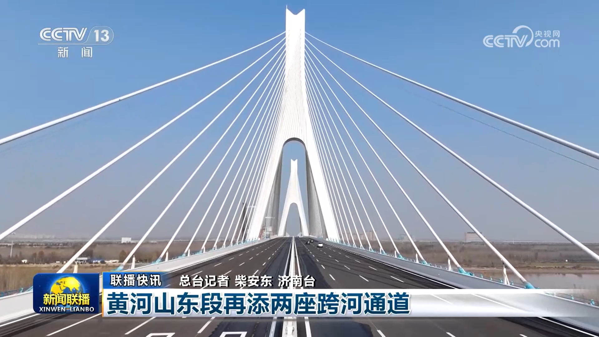 11月23-24日,央视《新闻联播》《24小时》《经济信息联播》栏目分别以《黄河山东段再添两座跨河通道》《山东济南 两座跨黄河大桥同时通车运营》《山东济南再添两条跨黄河通道》为题,对济南新建的济南黄河大桥主线、济南黄河齐鲁大桥同时通车运营进行了关注。