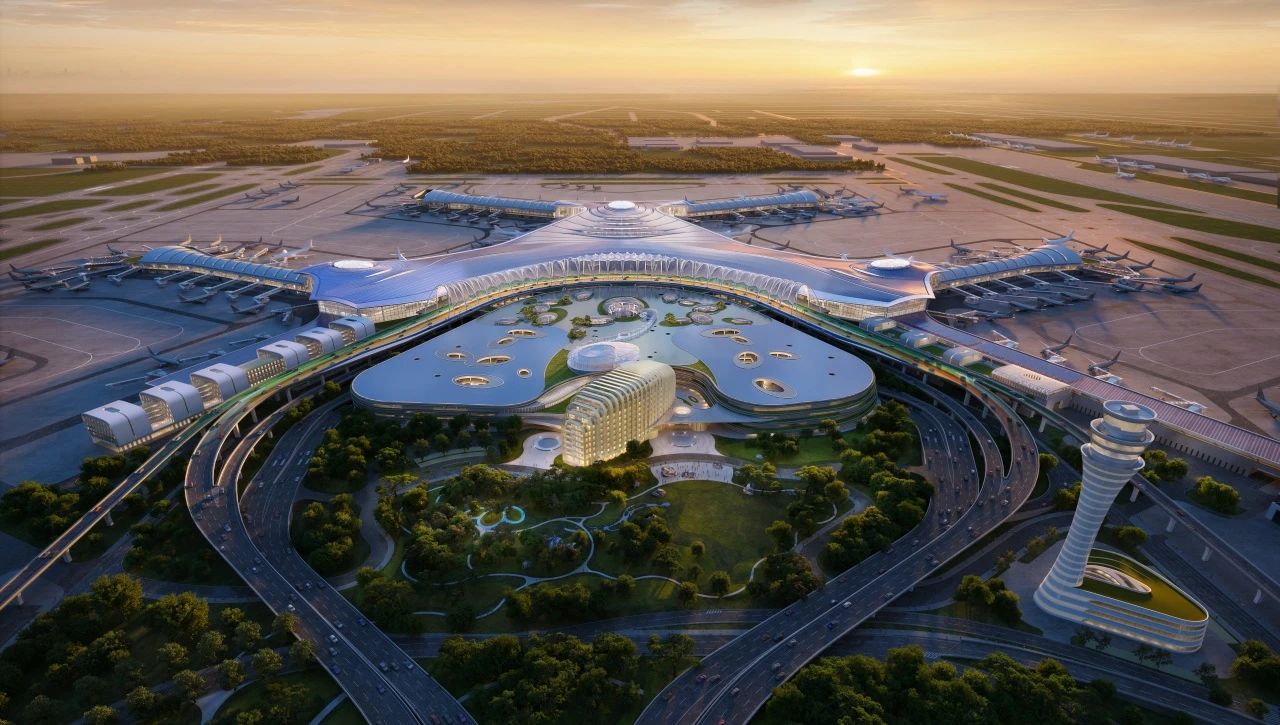 作为建设交通强国山东示范区的重大标志性、引领性工程,济南机场二期改扩建工程新建60万㎡T2航站楼,与17万㎡现T1航站楼组成近80万㎡航站楼,新建2条3600米跑道,与现跑道形成3跑道运行,新建38万㎡综合交通中心,引入济滨高铁和3条地铁。