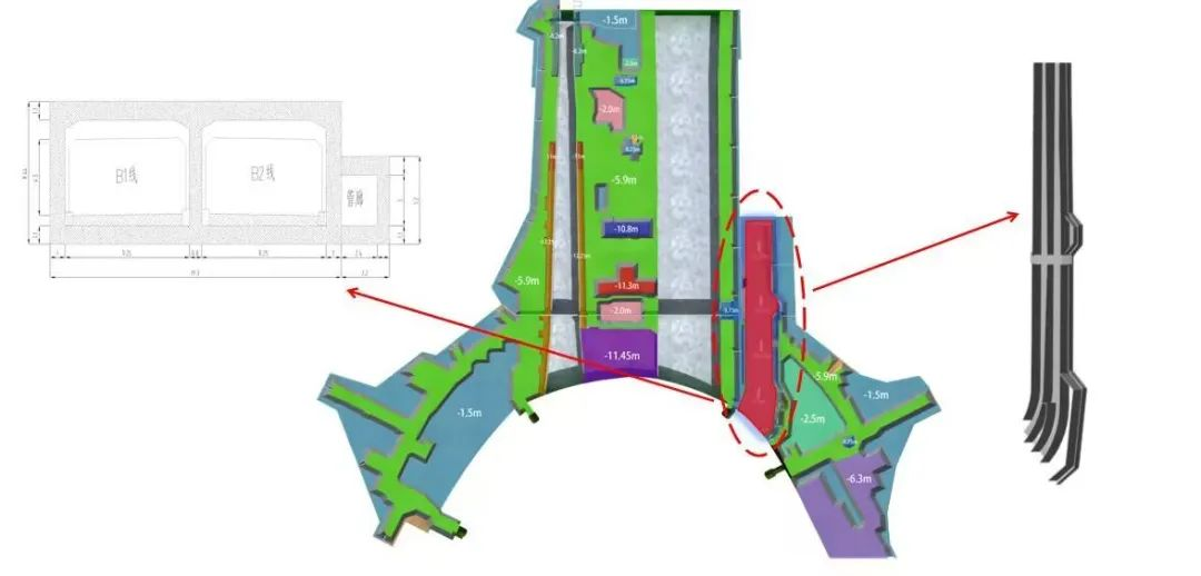 济南遥墙机场二期改扩建工程T2航站楼项目8号下穿通道首段主体1400立方米混凝土浇筑完成,标志着项目建设取得阶段性胜利。由济南国际机场建设有限公司投资建设的济南遥墙机场二期改扩建工程8号下穿通道位于T1航站楼西北侧,南北向横穿正在建设的济南遥墙机场T2航站楼,连接南、北工作区,可以实现工作区车辆的南北街接,全长245米,采用双仓分建和双仓共建钢筋混凝土结构,双仓分建段尺寸标准段内径净宽8.25米,净高约7.2~7.5米,底板厚度1.2米,顶板厚度0.7米,中墙厚0.8米,侧墙厚1.0米。8-1通道主体涉及高支模超危大工程,墙体厚、高度宽度均渐变、圆弧线性,横穿8条斜交梁,多处异型柱,与中建三局八局预留预埋交叉施工,结构复杂,施工难度大。自项目启动以来,项目部秉持精益求精的态度,攻坚克难,顺利完成8号下穿通道首段主体浇筑节点目标。