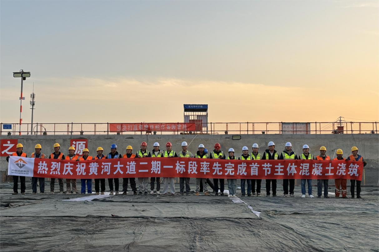 济南黄河大道二期工程施工一标段率先完成首节主体混凝土浇筑。黄河大道二期工程首节主体长35米,宽30.3米,高9.2米,由底板、侧墙、顶板三部分组成,所用材料主要为C40补偿收缩混凝土,抗渗等级P10。为了保障主体混凝土浇筑质量与进度,项目部周密策划组织施工,积极落实浇筑技术质量安全交底,统筹调配人材机配置与进场,铆足干劲、团结协作,顺利完成首节主体混凝土浇筑。作为济南新旧动能转换起步区的重点项目,首节主体浇筑是黄河大道二期工程建设的又一重要工程节点。