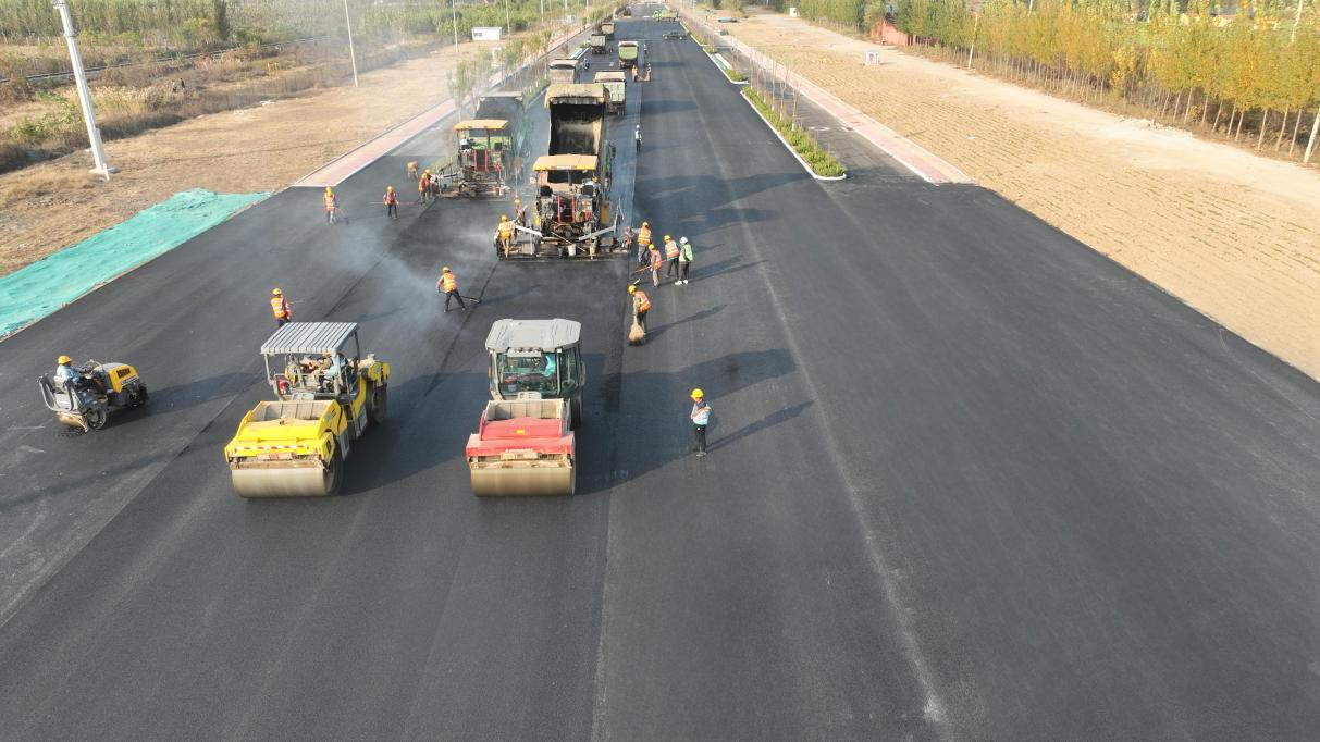 聊城铁西片区项目完成车行道沥青上面层节点目标任务。聊城市东昌府区铁西片区市政路网能源管网基础设施建设项目属山东省重点工程项目,片区内“三横两纵”道路建设总布局为铁西片区规划发展搭建了道路“主动脉”。本次车行道沥青上面层摊铺工作节点任务涵盖摄城路南段、嘉园西路中段、城源路北段及圣泉街西段,摊铺作业面积达16.88万平方米,历时9天。