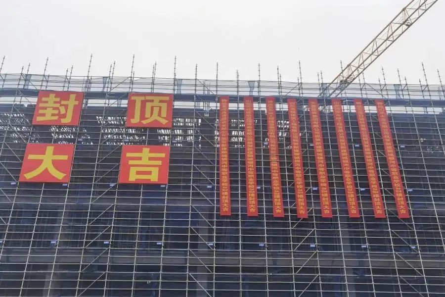 聊城银河中等职业学校项目是聊城市重点民生工程,项目建成后将有效缓解片区教育资源紧缺问题,进一步完善片区教育资源配套设施。本次封顶的9#宿舍楼共5层(地上4层,地下1层)、10#宿舍楼共6层(地上5层,地下1层)。自项目启动以来,项目部充分发扬“城建铁军”精神,克服多班组交叉施工、天气不利等因素,紧扣工期目标,注重工程建设品质,加大人力物力投入,合理配置现场资源,保质保量推进工程进度,成功完成各项节点目标。