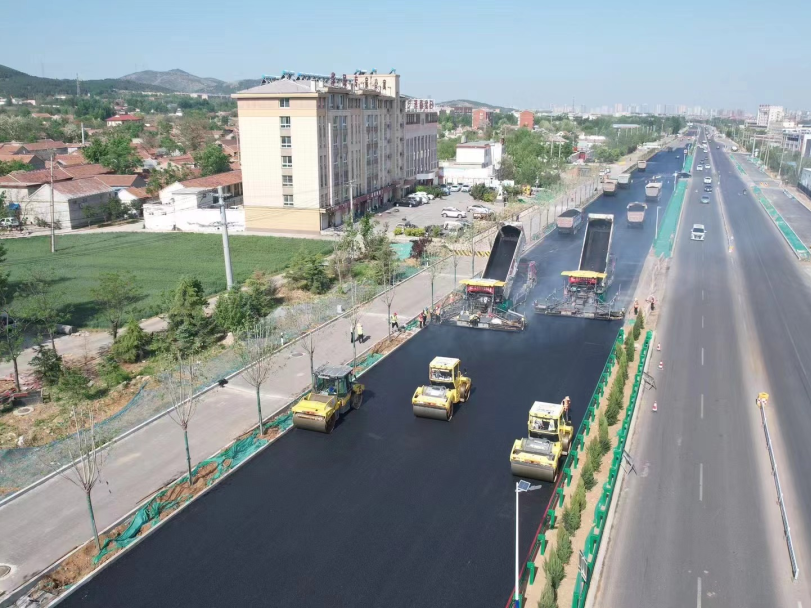 所属济南金曰公路工程有限公司承建的G309改建项目四标段、六标段路面工程左幅沥青路面铺装全线贯通,为项目全线通车打下坚实基础。