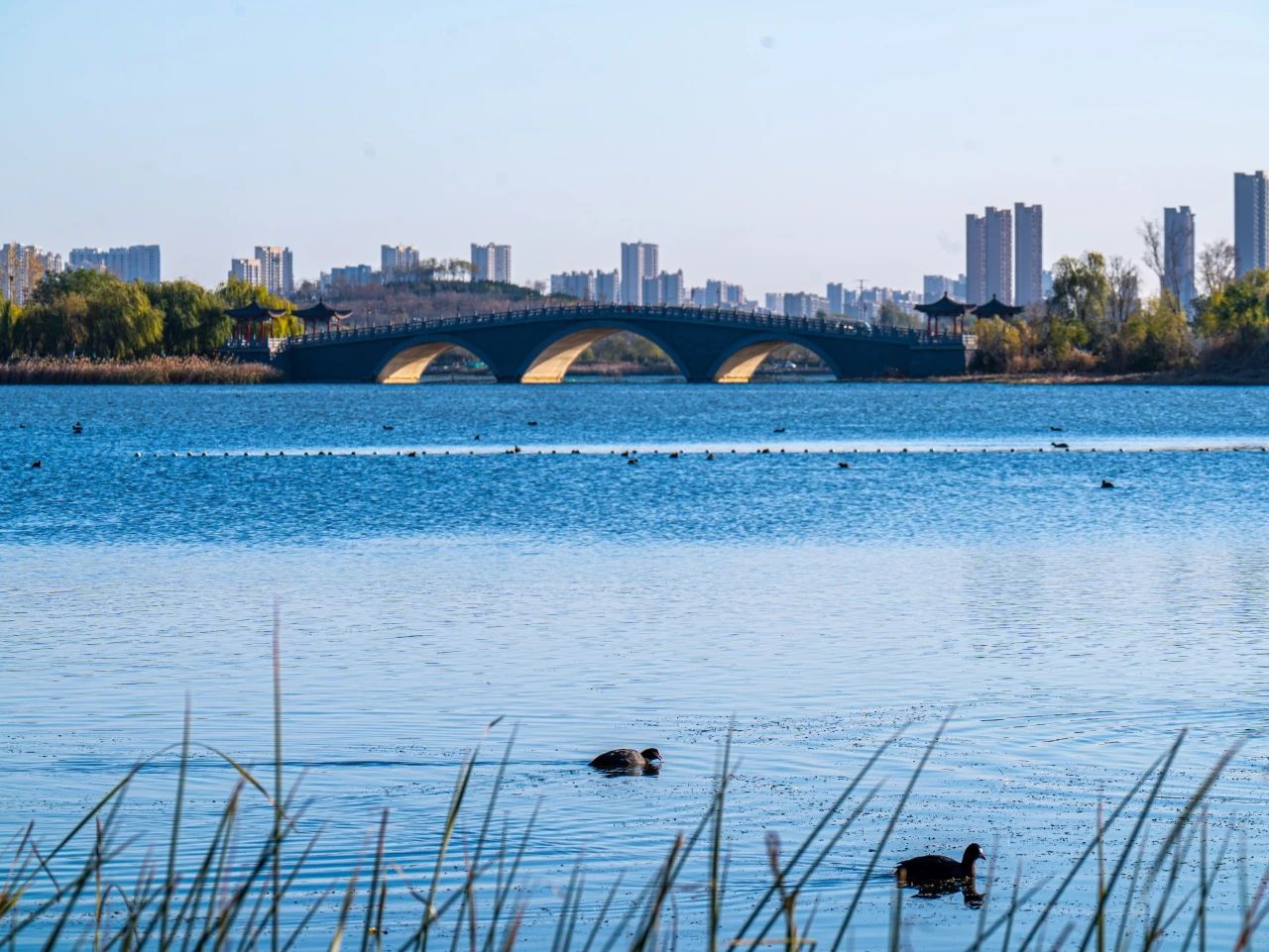 积极开展水体养护、防污治污工作,整体推进湖水生态治理,通过建湖、引水、养湖,将华山大沟和山头店沟两处黑臭水体污染源统筹治理,让华山湖再现“鹊华烟雨”胜景,完成了昔日臭水沟到文旅新地标的“华丽蝶变”,目前华山湖水质主要指标达到地表三类水质。